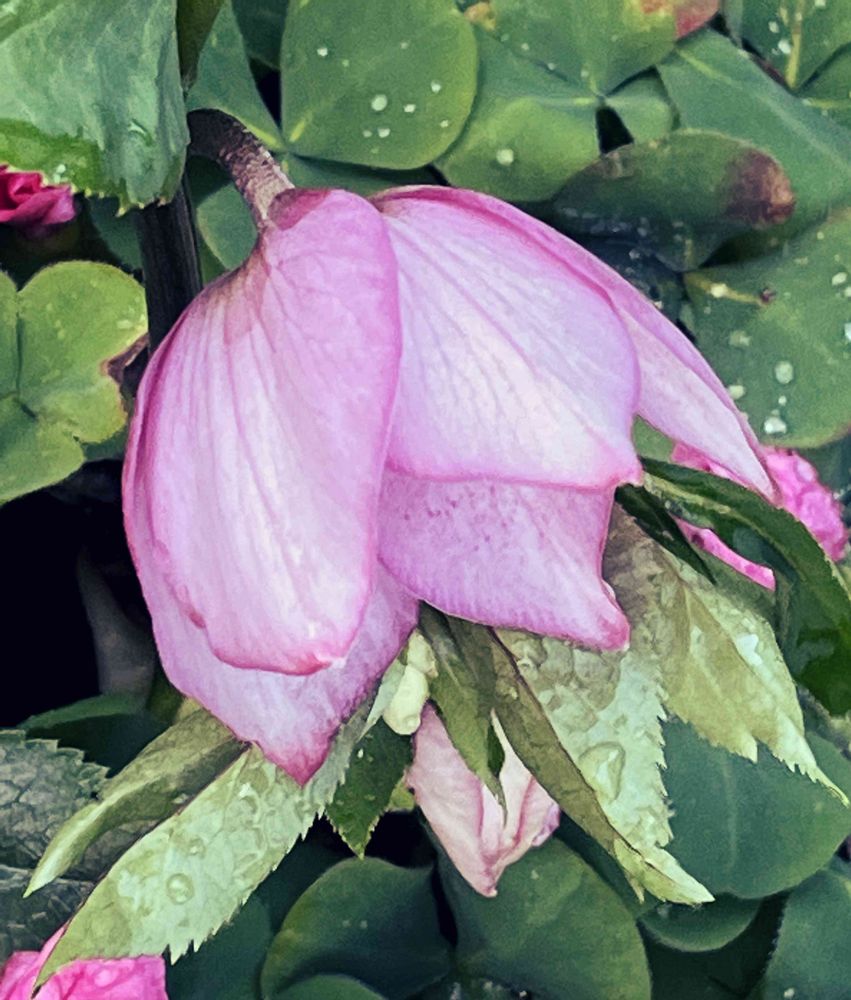 クリスマスローズが、オキザリスの中から、ひょっこり