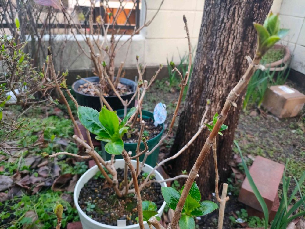 暖かいからか、紫陽花がだいぶ芽吹いてきてます。まだ2月だよ🤣