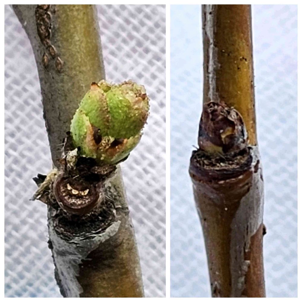 葉痕は半円形で維管束痕は3つ(と成書に書いています)