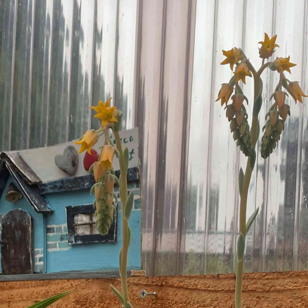 ➂徒長してるのでは無いでしょうか?長らく入院させているから、青白い。小屋の隅っこのてっぺんなのに、日があまり当たらないのかしら?