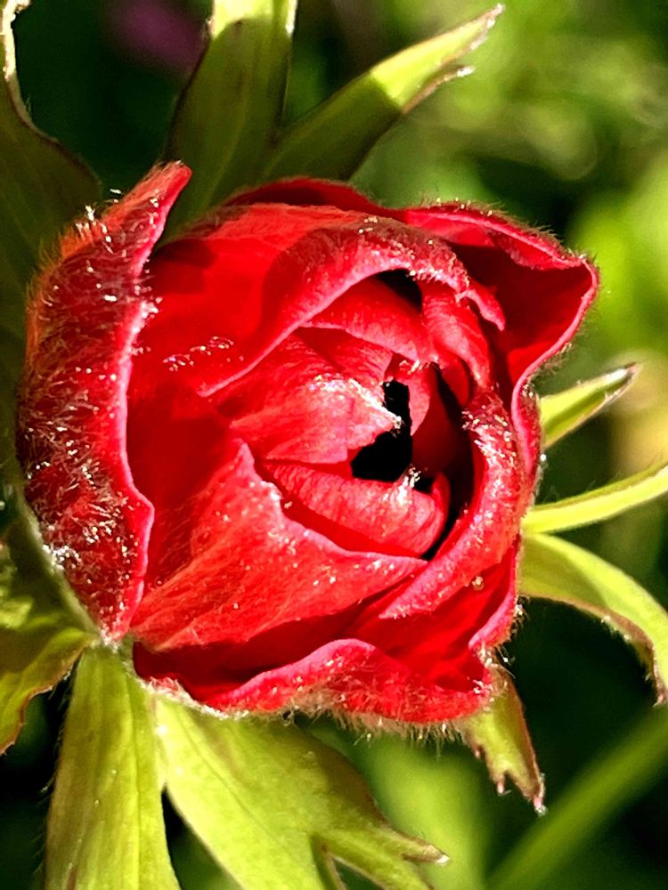 昨日の夕方、花壇で咲きかけの、アネモネを見つけました。