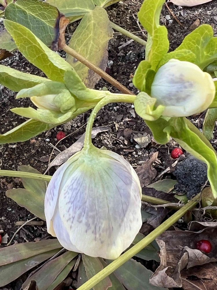 他のクリスマスローズは大きな夏椿の下に10株程おりましたが、一株残して、気づいた時には🌈になってました。何がいけなかった?