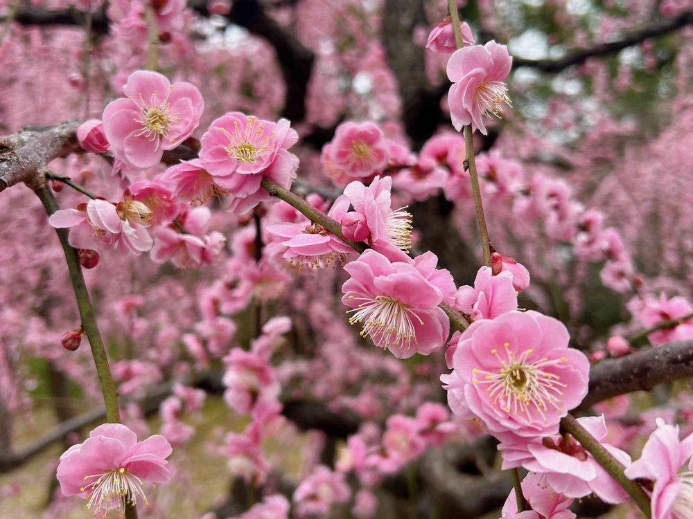 神苑のしだれ梅が見事に満開