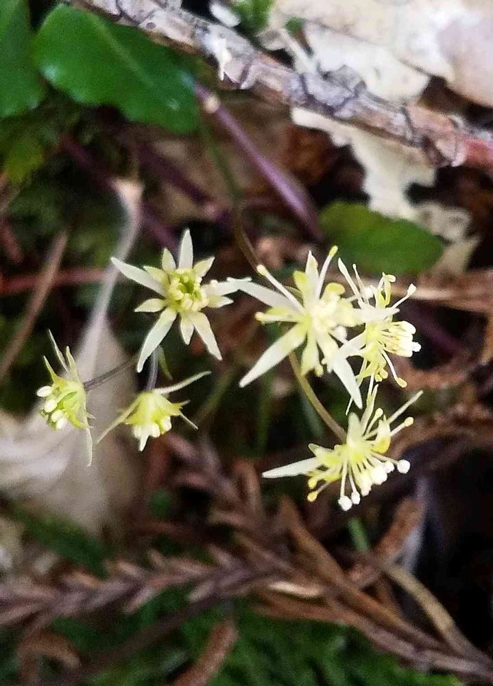 5㍉ぐらいの小さなオウレンです。花はセリバオウレンに良く似ていますが、比べものにならないほど小さいのにビックリ!!