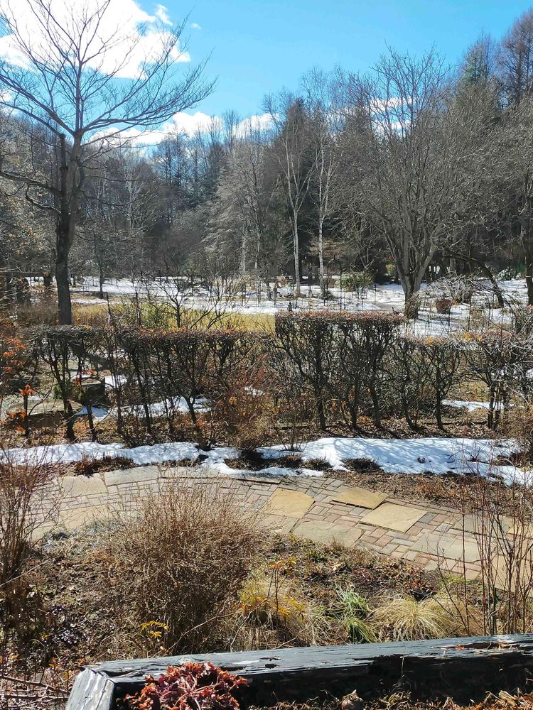 2枚目。雪が残っていて、当然バラは咲いていない。バラの最盛期には、きっと華やかな事でしょう。