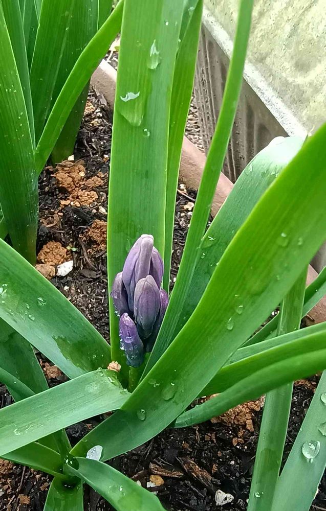 緑の頭🟢は見えているけど、まだヒヤシンスにはなりきれていません😅