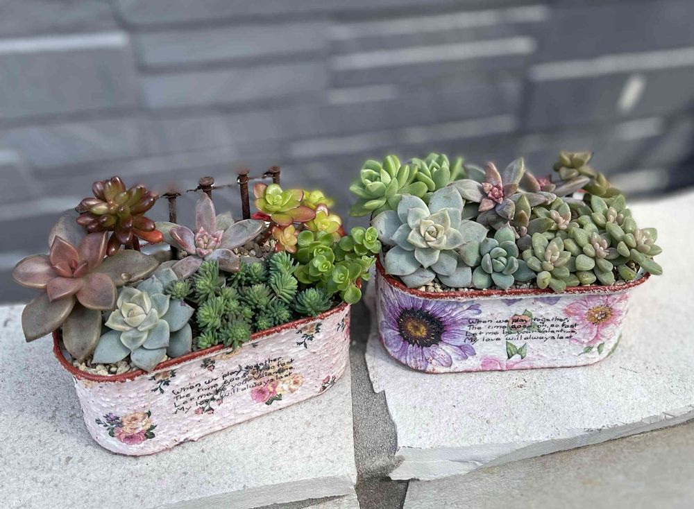 はじめまして🙋リメ缶かわいい色合いですね💕私も多肉事ができなくなる夏に挑戦してみようと思ってます💪フォローさせていただきます🙇♀️