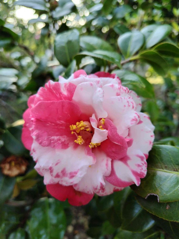 椿 我が家も開いてました。明日の投稿かな? それよりも和風な椿。沖縄っぽくないですね😆