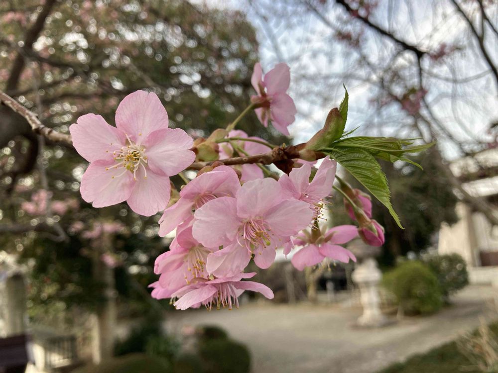連日異常な暖かさなので、萬福寺の「カワヅサクラ」が今日見たらもう八分咲き。