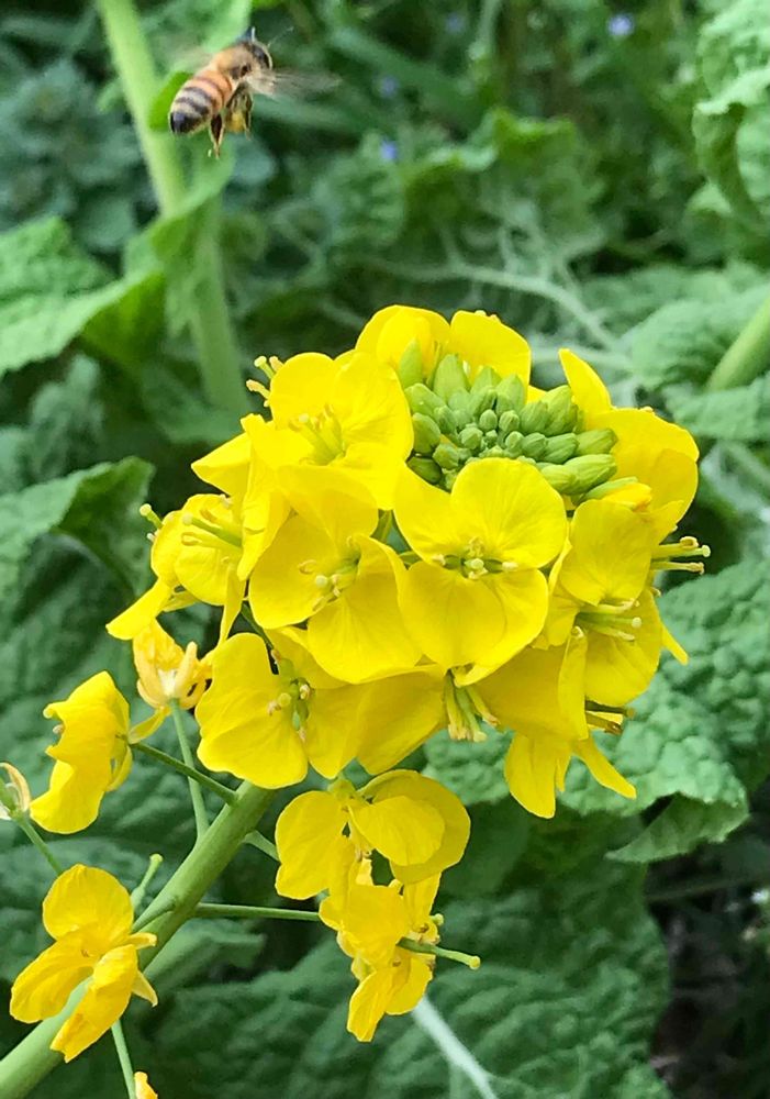 菜の花に蜜を求めて、蜂🐝が、来ていました♪🌼☺️🥰