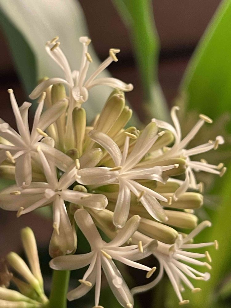 そこでドラセナのお花が咲いているのに出会いました。36年育てて初めて咲いたとのこと。すご〜い😃
