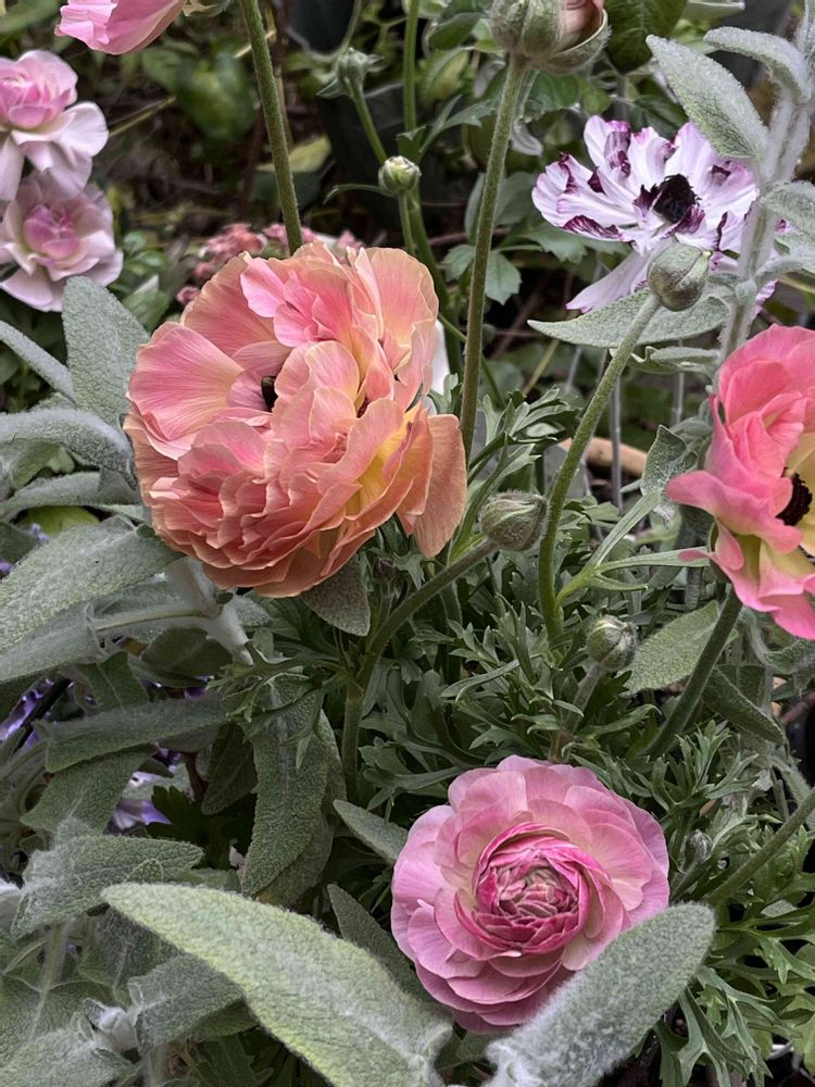 ❶〜❺ラナンキュラス エトワール✨✨蕾だったものが開いて来ました🙌一番花は八重ですが脇芽からのお花は一重になりがちなのかなぁ?でもこれはこれで綺麗です💖💕