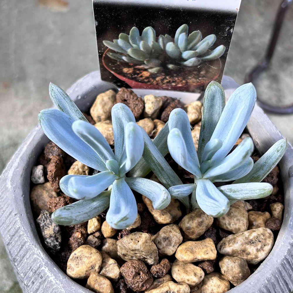 ...多肉植物にハマったわけではないんです。青色の花が好きな身の上としては、この青白い葉姿を目にして迎え入れずにはいられなかったんです🥹