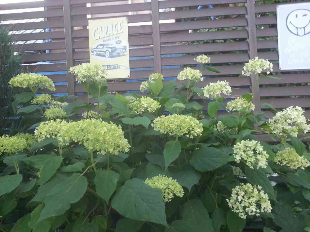 アナベルが咲きました。満開だと花が重くて垂れて来るのでこれくらいが見ててちょうど良い感じです。