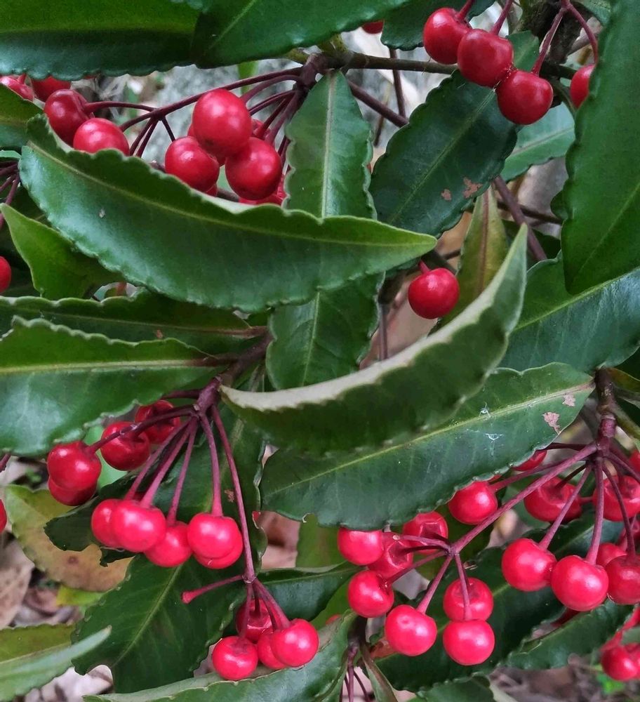 お稽古の帰り道、何気なく植え込みの下を除いたら、木のしたに沢山の赤い実がありました‼️
