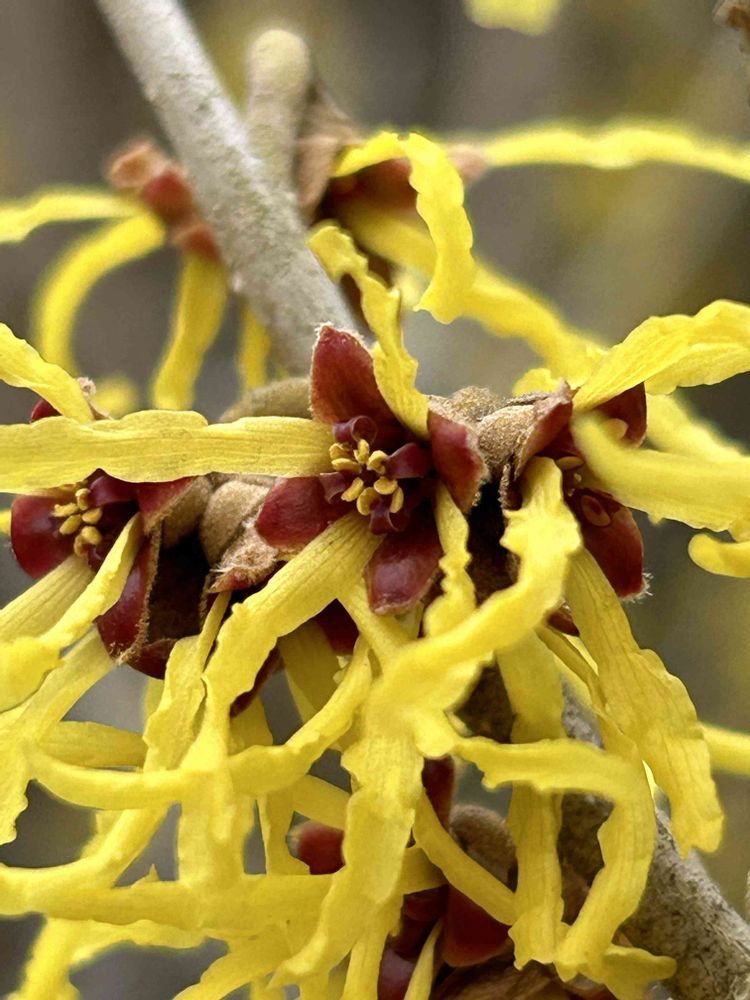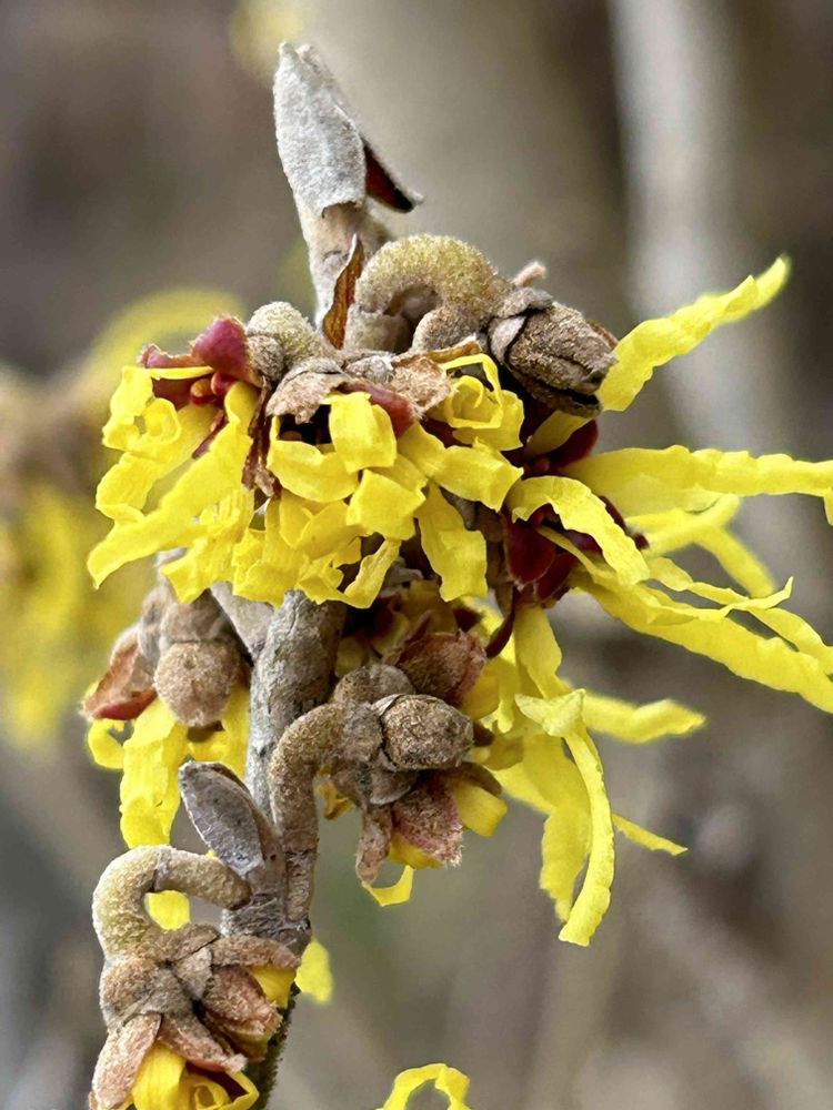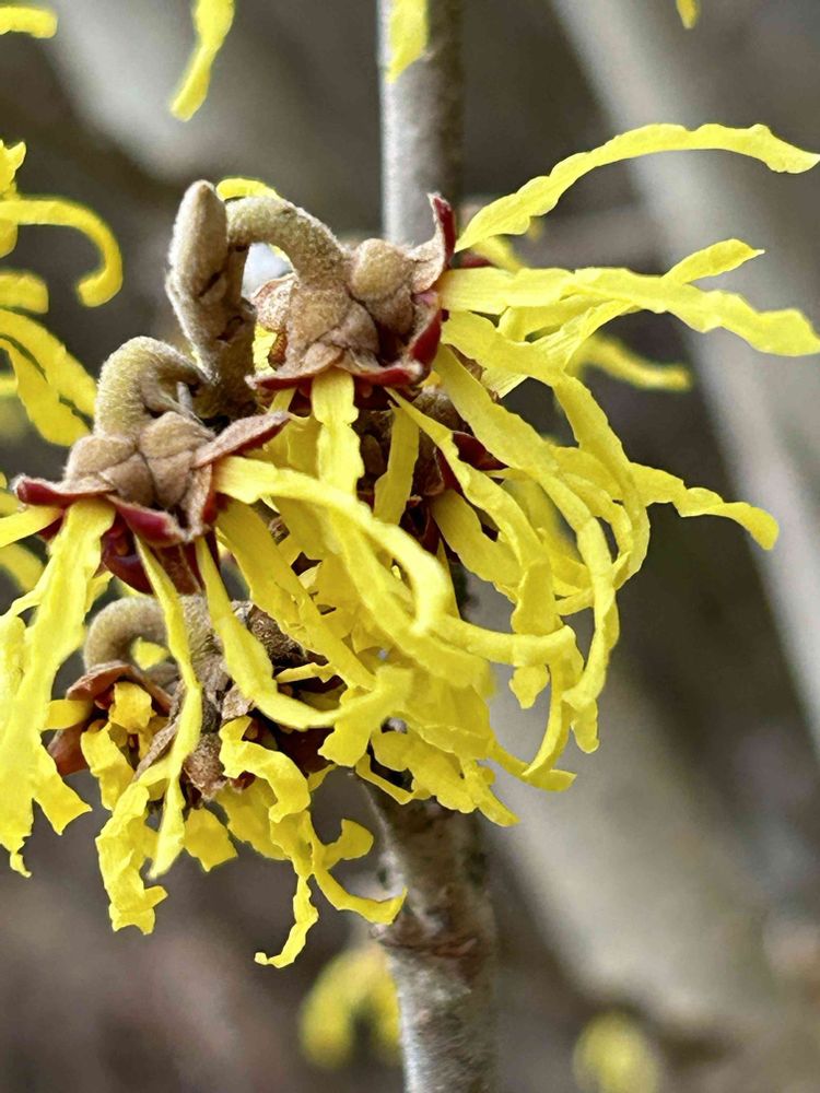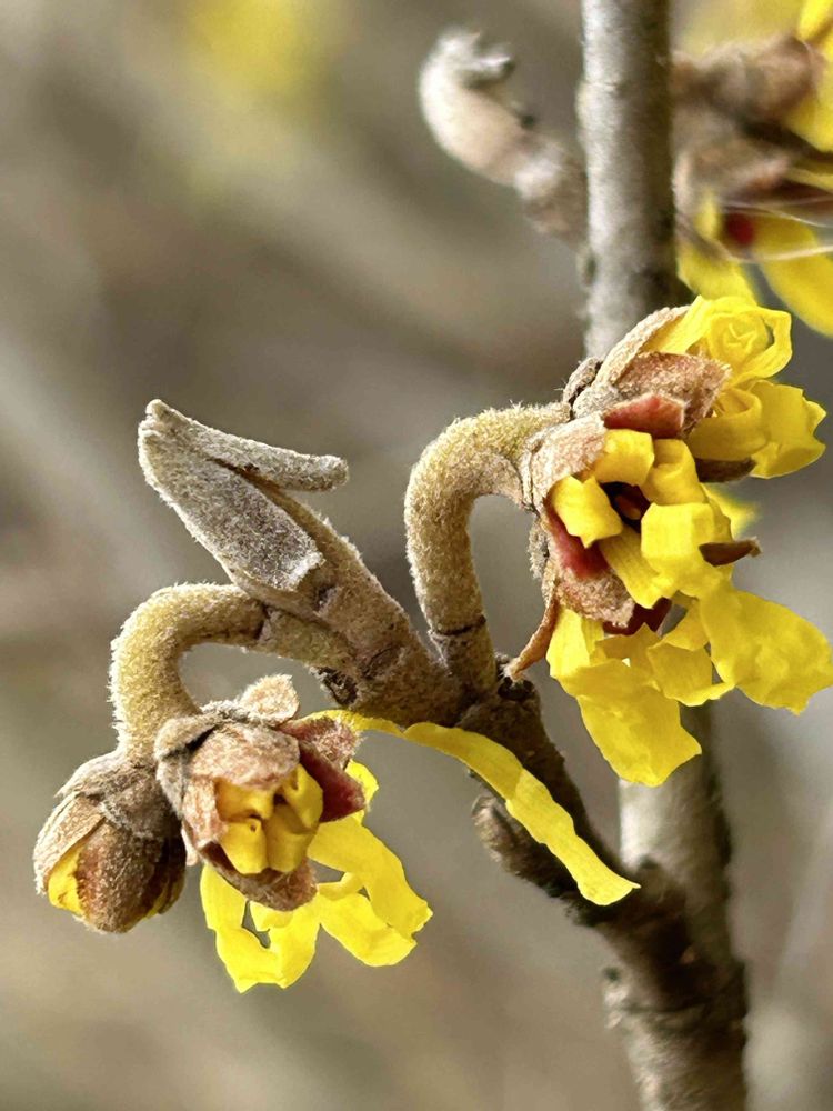 うわぁ~~😍 マンサクの蕾から花びらの🎗️が開くまでがコマ送りの様で分りやす~😲👍🙆