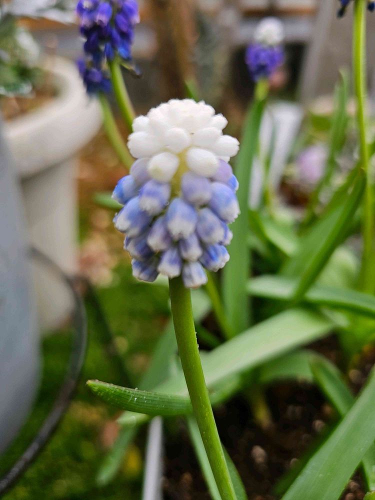 ウチでは初めてムスカリの水色3本、薄ピンク1本が咲きました👍❣️