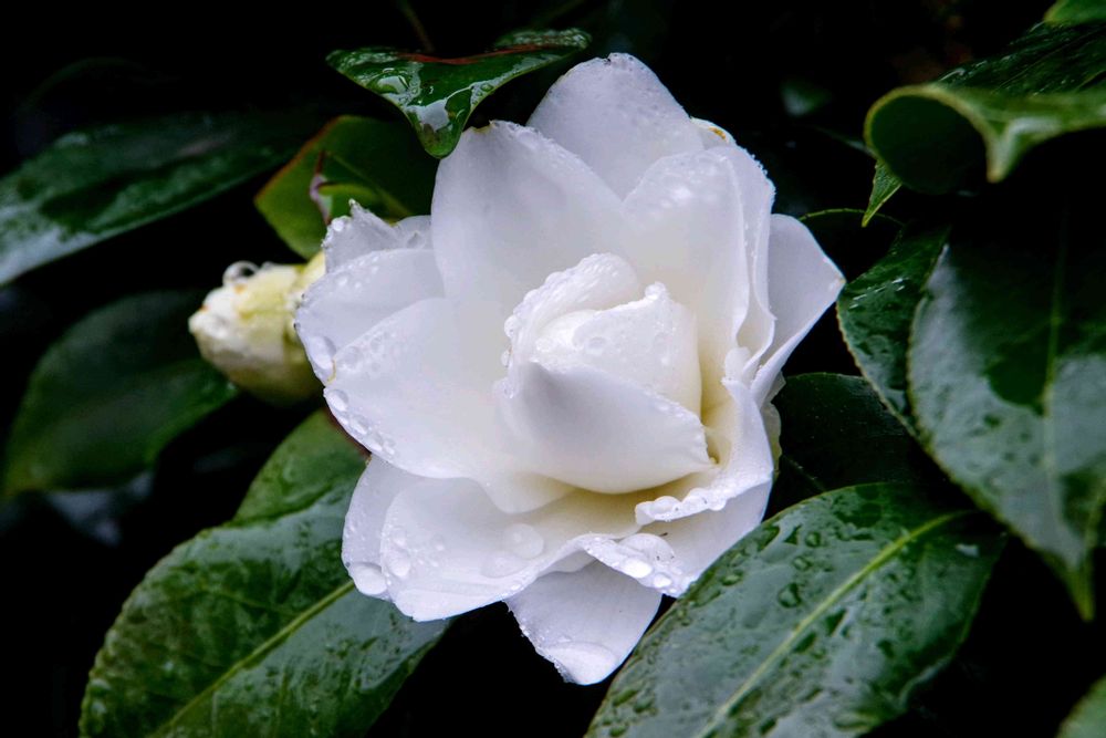 ホーエンザルツブルクさんの,白い椿,雨の日の椿の投稿画像