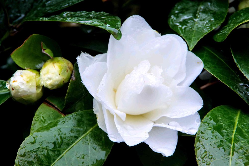 ,白い椿,雨の日の椿の投稿画像
