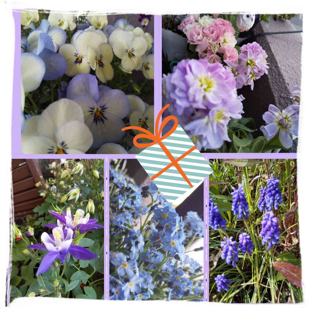 💜ムスカリさん…↘️とオダマキ…の花…↙️💜🤍🌿