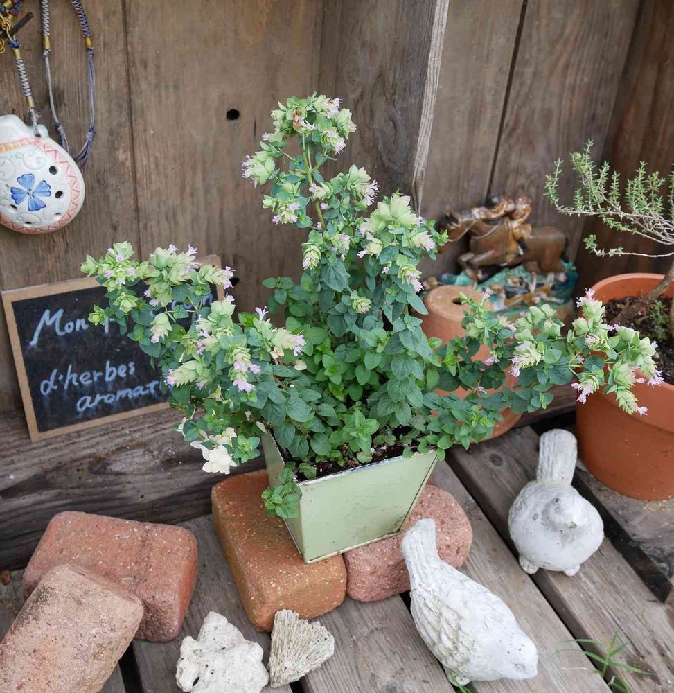 軒下で雨宿り中の オレガノ ディングルフェアリー。