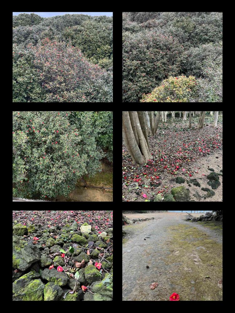 吹き出した溶岩の上に椿が生えてます。