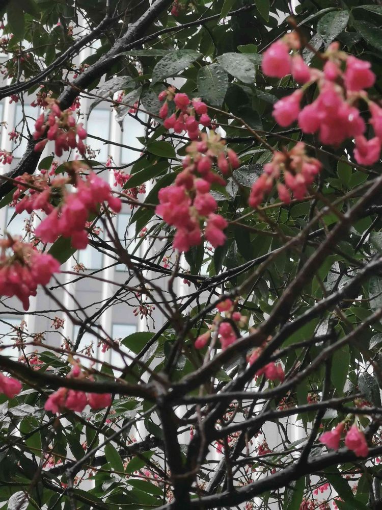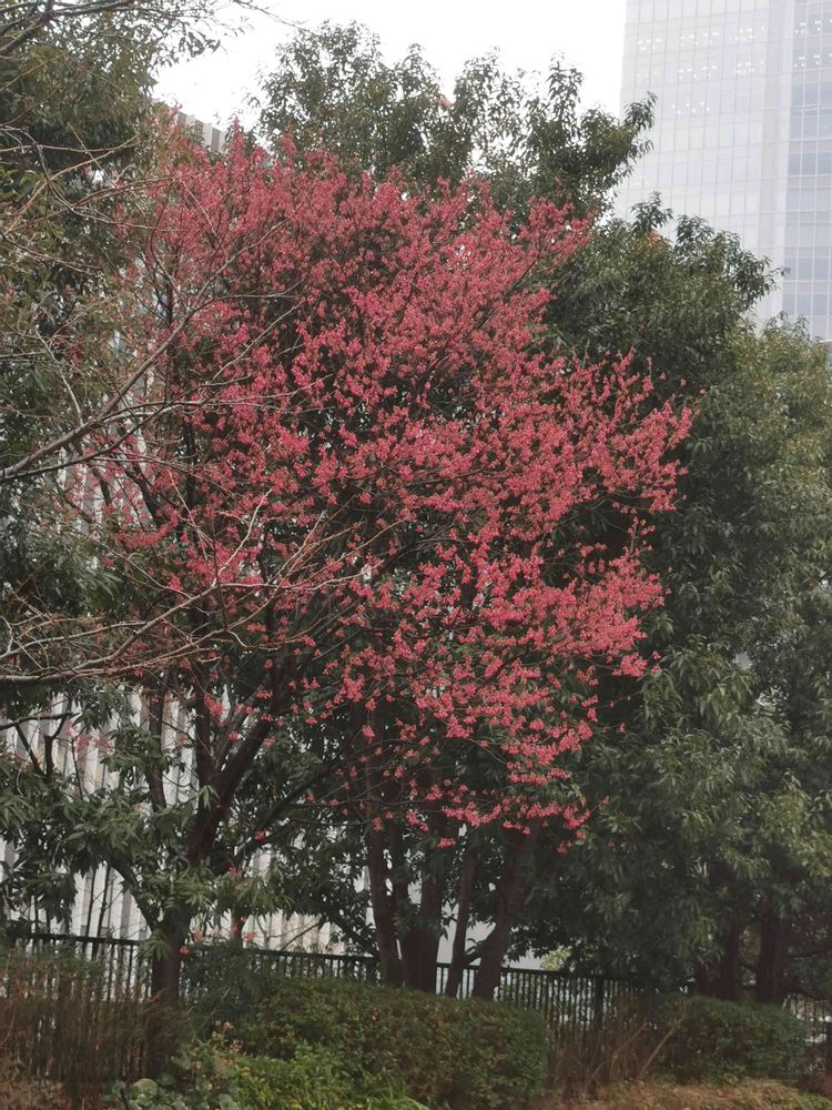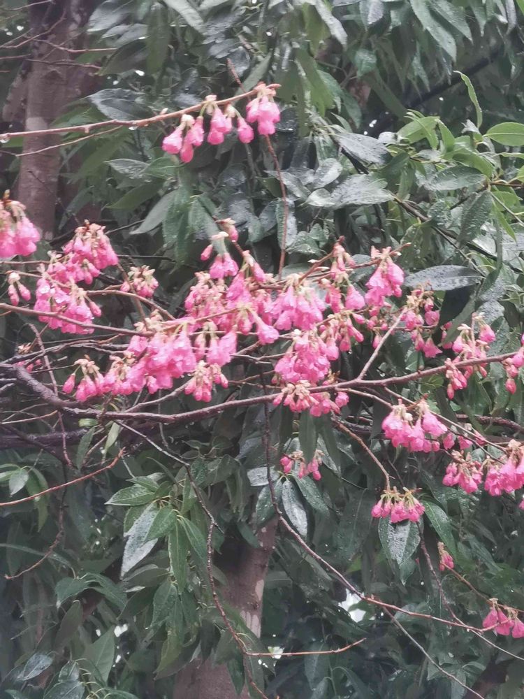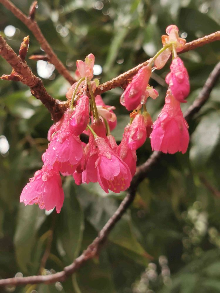 雨の中、緋寒桜が咲いていました。