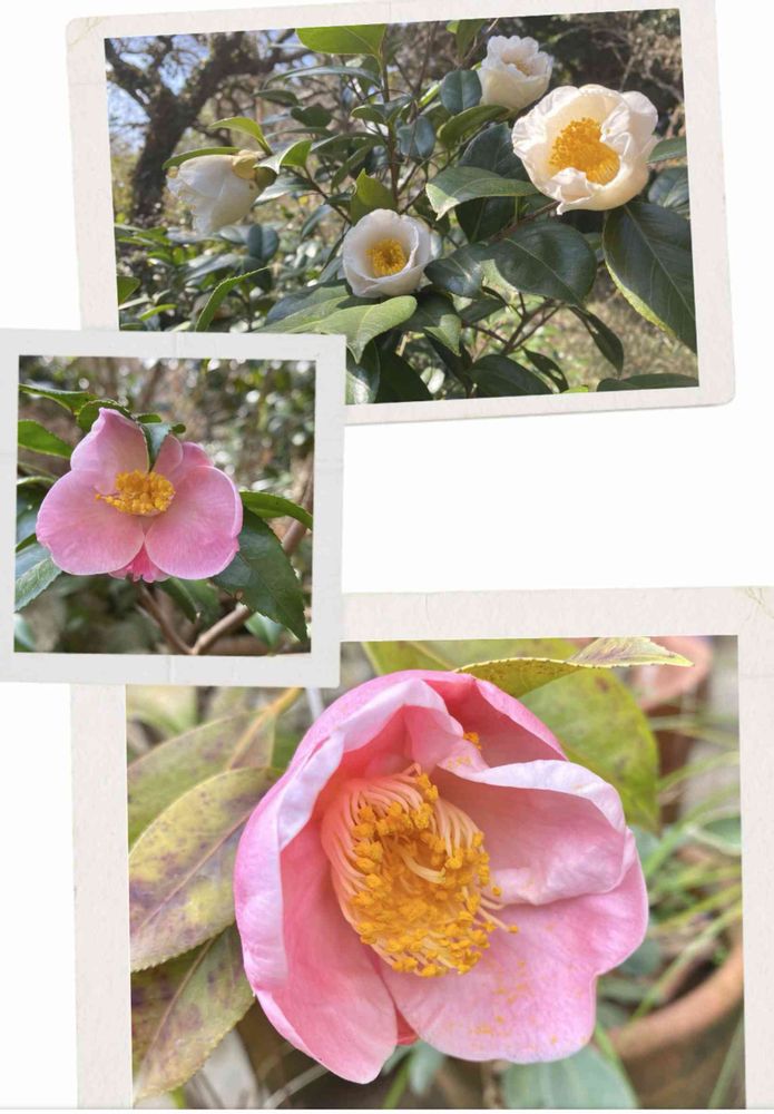 暖かな日が続いたので椿が咲いていました💗🤍🩷🌿