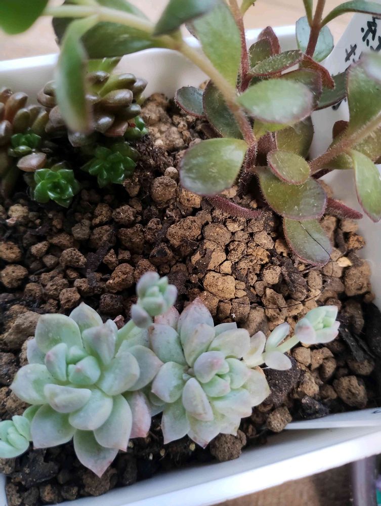 ペペロミア オイデス。どんどん大きくなってお子様が増えていきます。昨年の夏位に1度解体してお子様を何人かに貰っもらったのに。すごいスピードで増えてます😁3枚目はプロリフェラ、リトルゼム、紅提灯。とても小さいのを買ってきて寄せておいたら少し増えてました。可愛いです♥️