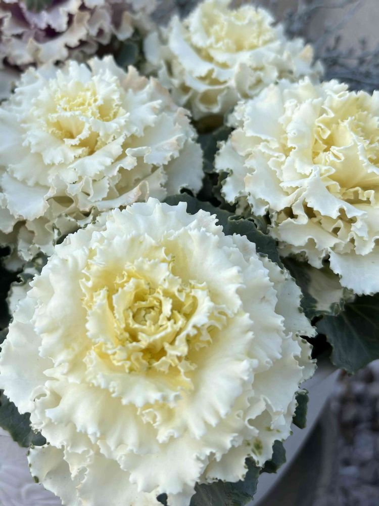 白の葉牡丹、ソフトクリーム🍦みたいです😅