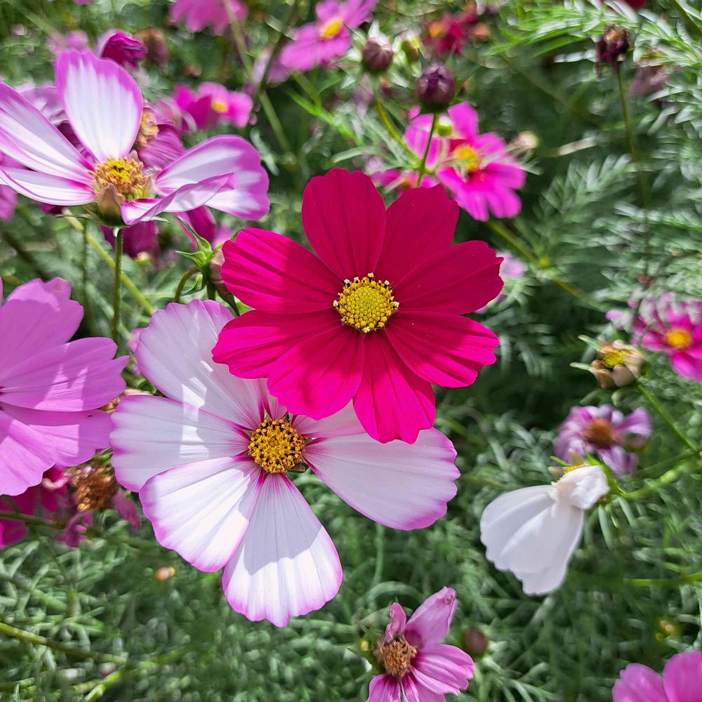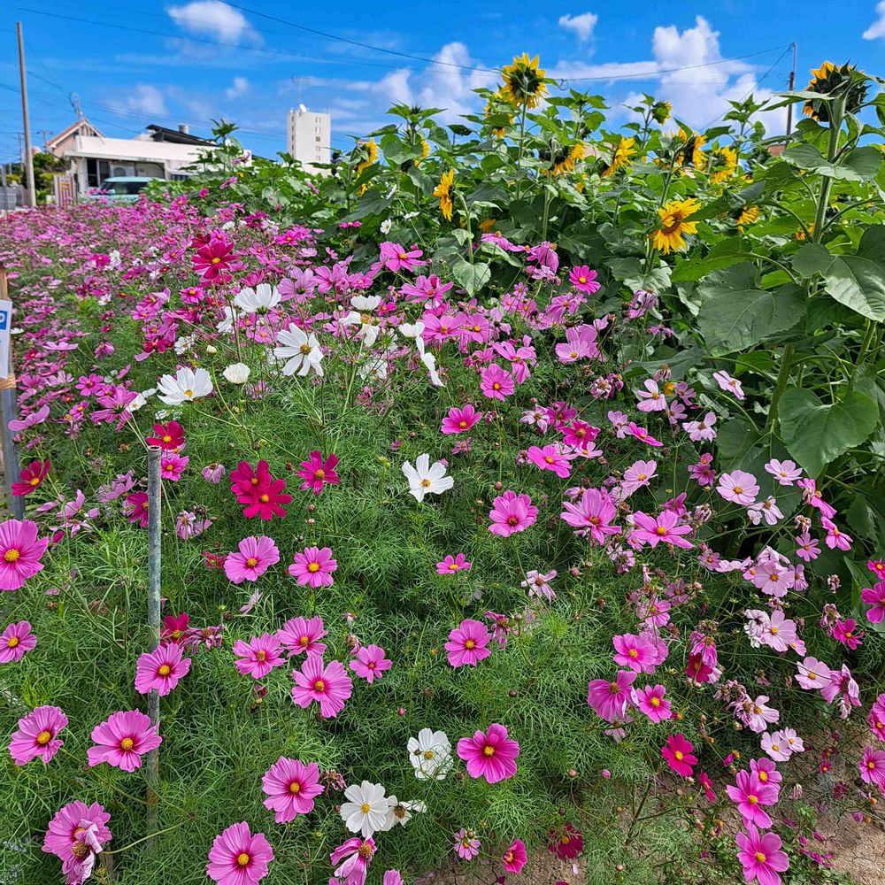地域の皆様が植栽された コスモス ひまわり🌻 沿道のアルテラナンテラ🌼💠🌿