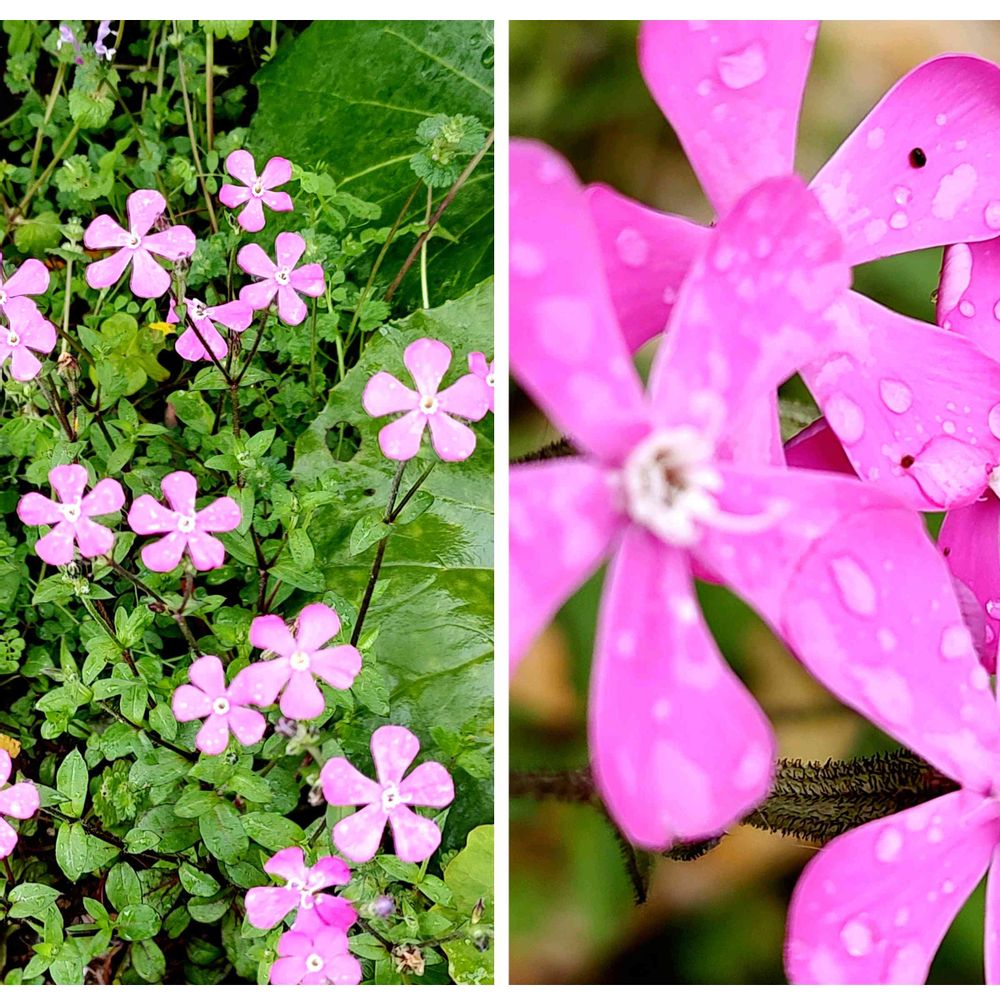 2枚目は、庭の土手の菜の花の下で咲くシレネピンクパンサー💕