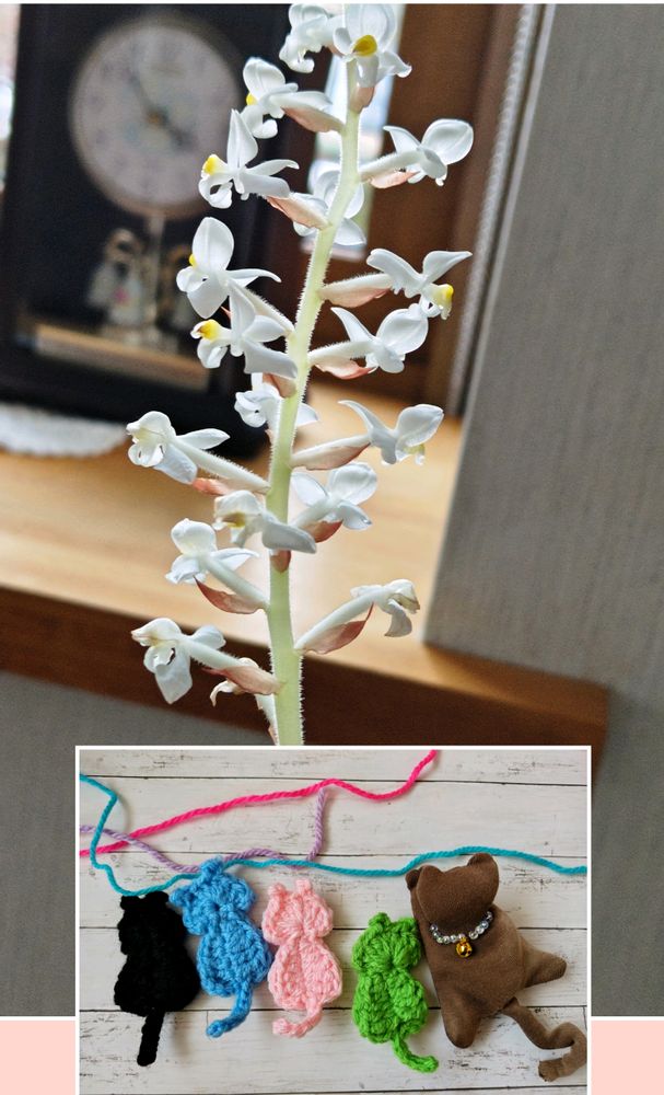 百均の編み編み猫ちゃんおめかし楽しみだニャンウキウキo(^Д^*)(*^Д^)oワクワク