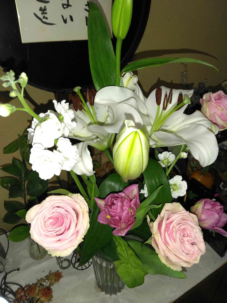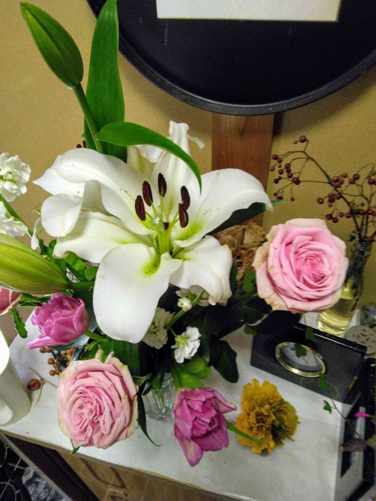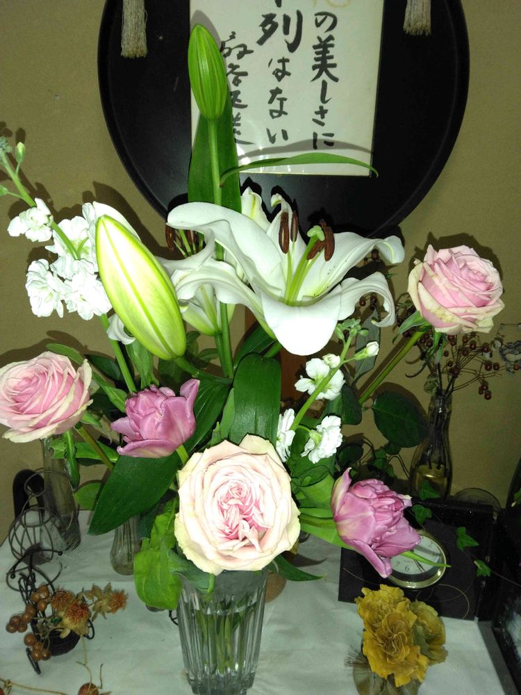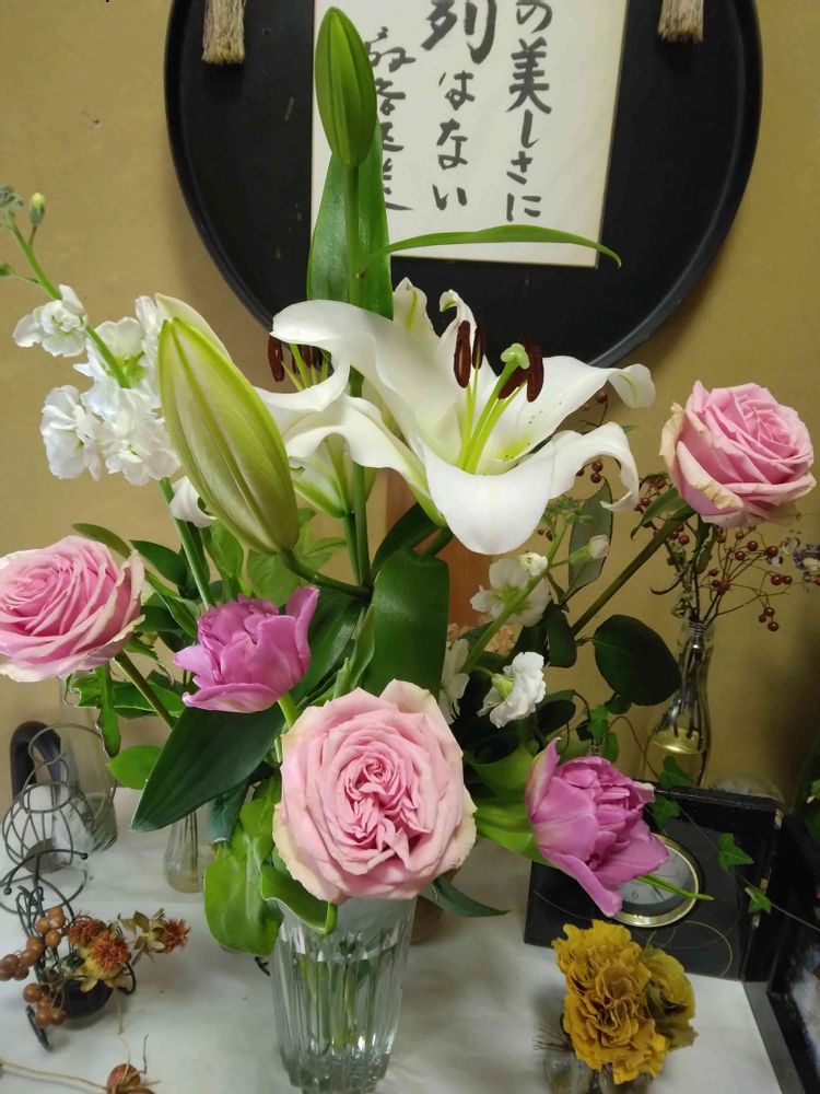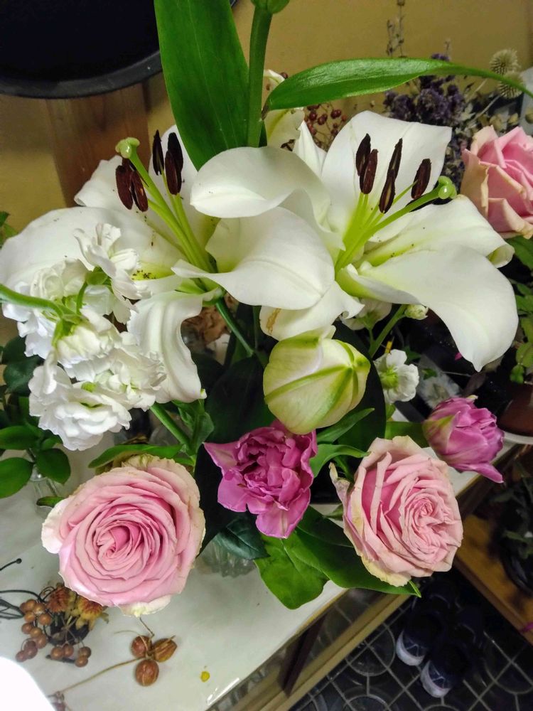 🤍の八重咲きストックはレッスンのあまりをいっしょに生けました。