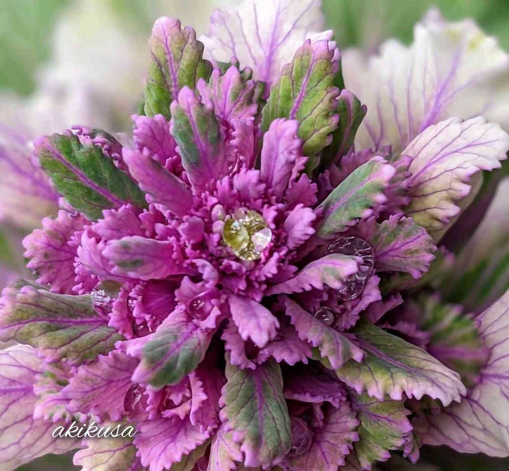 葉牡丹はいつもきれいな水滴で魅せてくれますね〜 ダイヤモンドかな〜?!