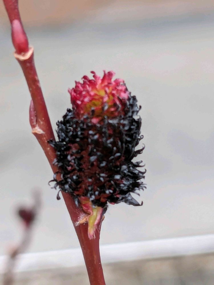 初めてみたクロヤナギ、🔴と⚫のツートンカラーが珍しい、可愛い〜♥ですね🤓👏🙌🫶