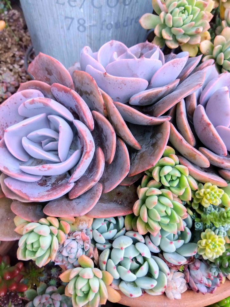 小さかった多肉たちも生長し、鉢いっぱいにそれぞれが主張しています。