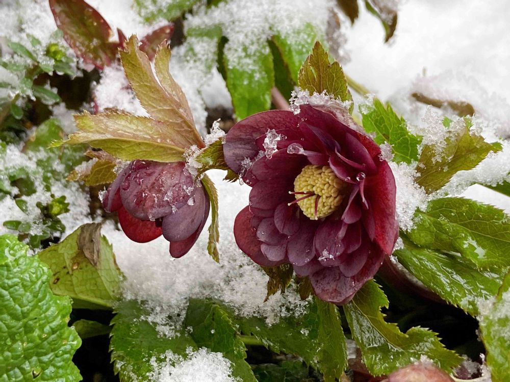 暖かい日が続きお花も咲き始めたのに今日は雪❄️