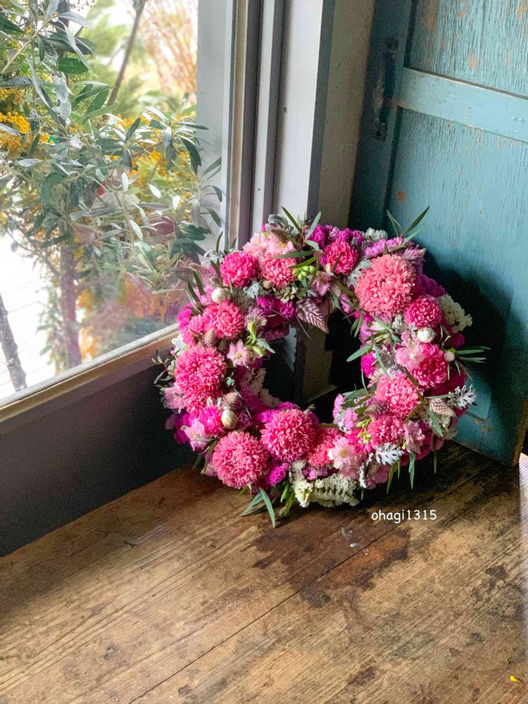 定番のドライリースもいいけど、フレッシュで華やかさのある花のリースもステキ!