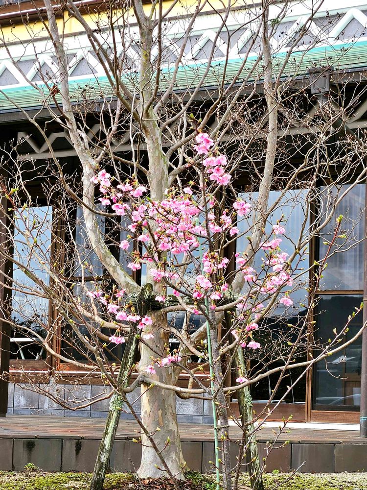 自治センターの庭の🌸桜が可愛く咲いています🌸近くの菜の花畑も春~という感じ💕👍