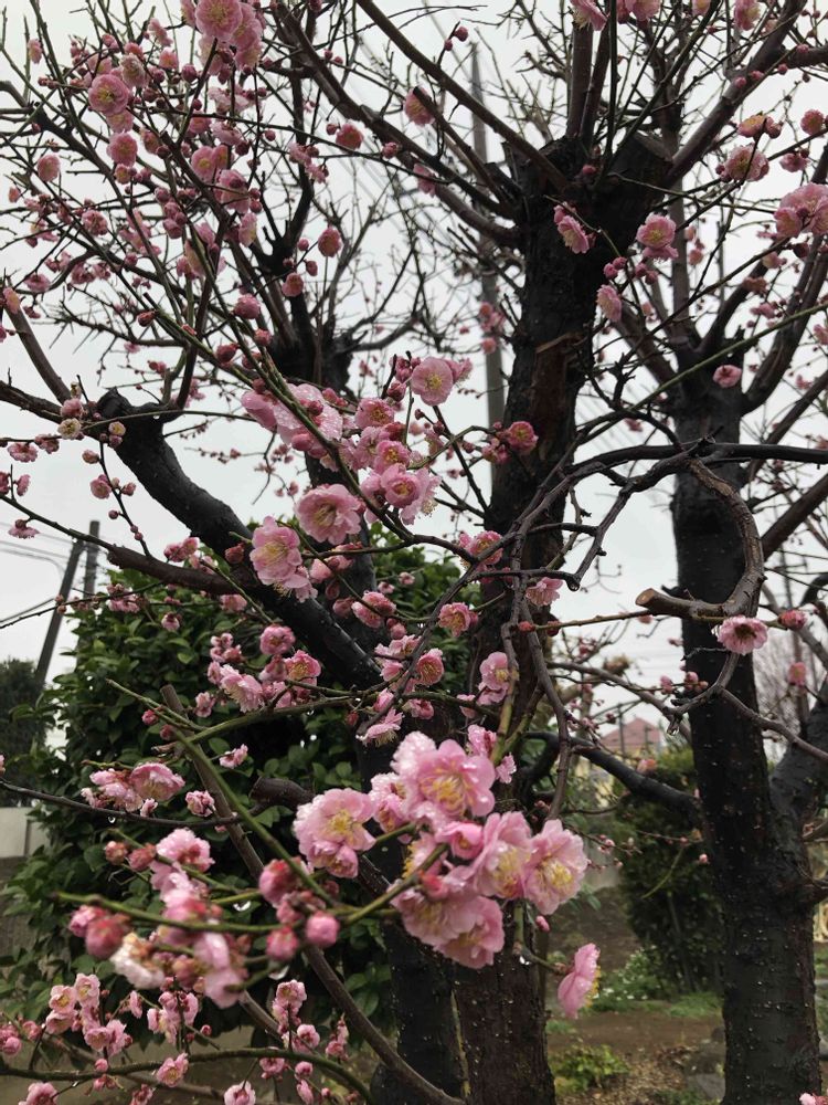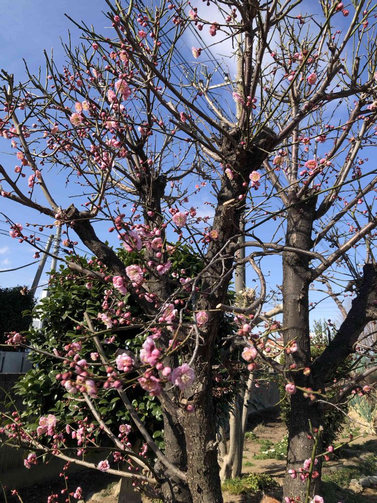我が家の紅梅がやっと咲き始めました。😊👍🎶📸