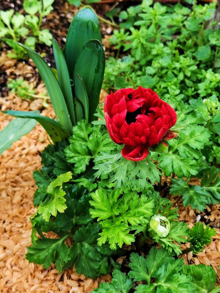 去年の球根からのアネモネ、赤の八重も開花しました。小さいけど超派手です。アネモネは八重よりも一重の方がいいなぁ()あとブルーの一重がどっかから咲いてくれるといいのですが。