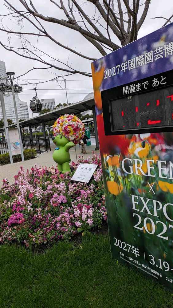 2017年から毎年開催の【Garden Necklace YOKOHAMA】でおなじみのキャラクター (ガーデンベア)【第33回全国都市緑化よこはまフェア】開催後、ずっと続いています。