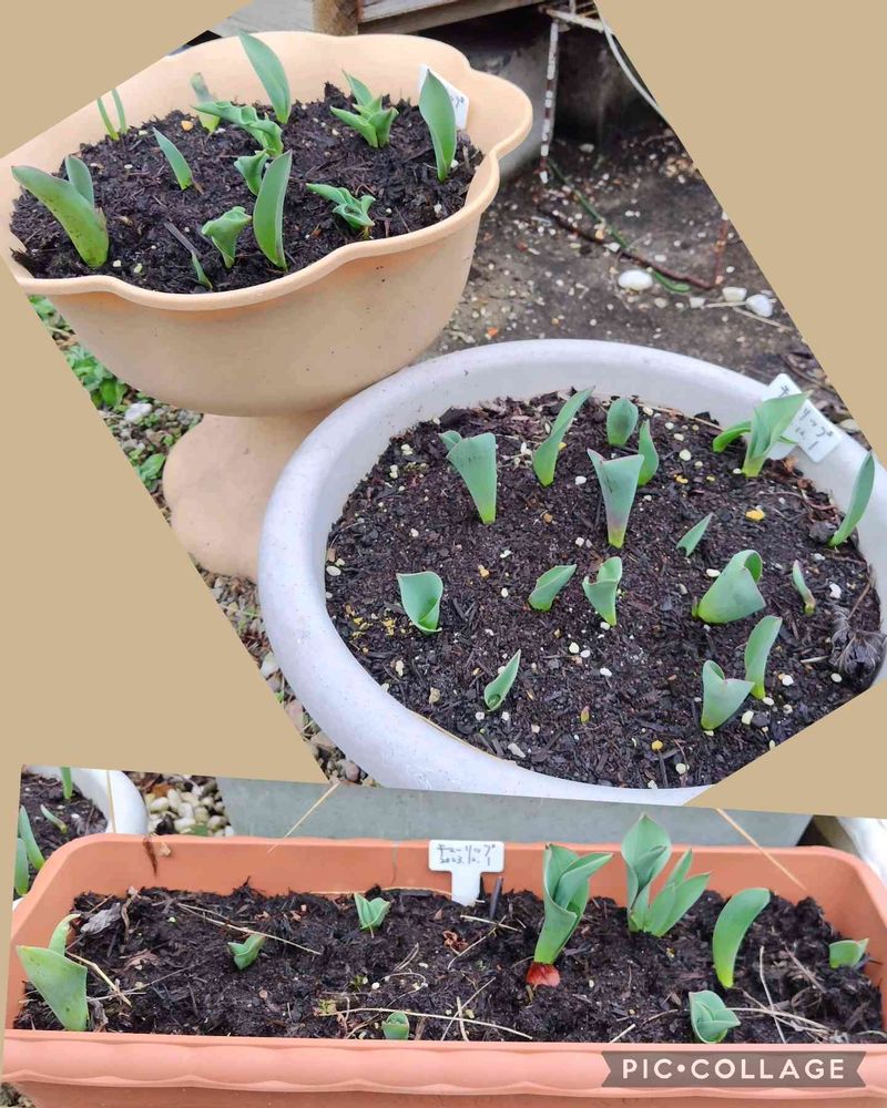 このところの温かさで、チューリップの芽がニョキニョキと出て来ました🌱🌱🌱