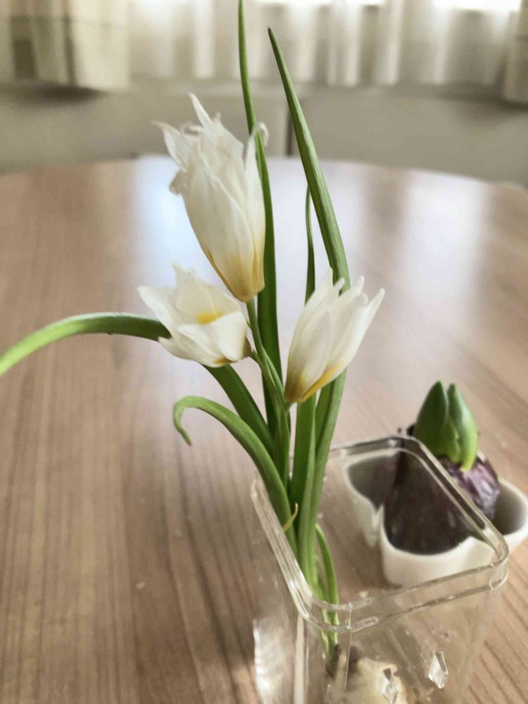 先日こちらで花友様にミニ球根植物の水耕栽培を見せていただき