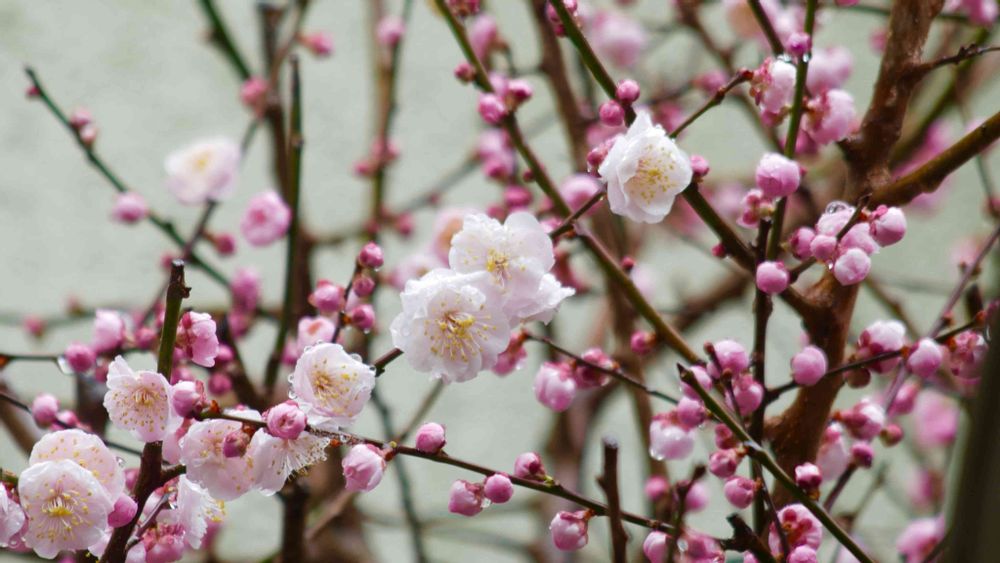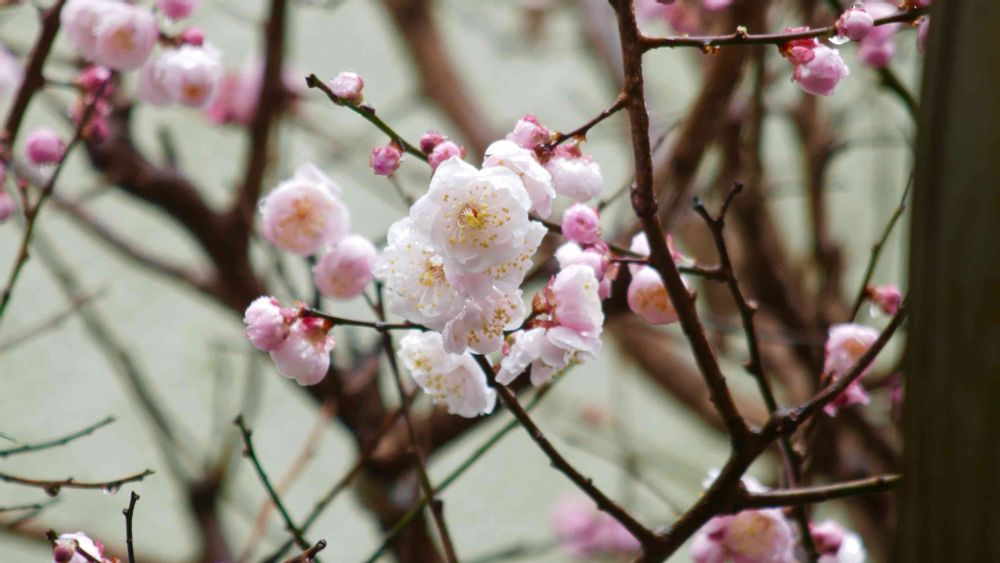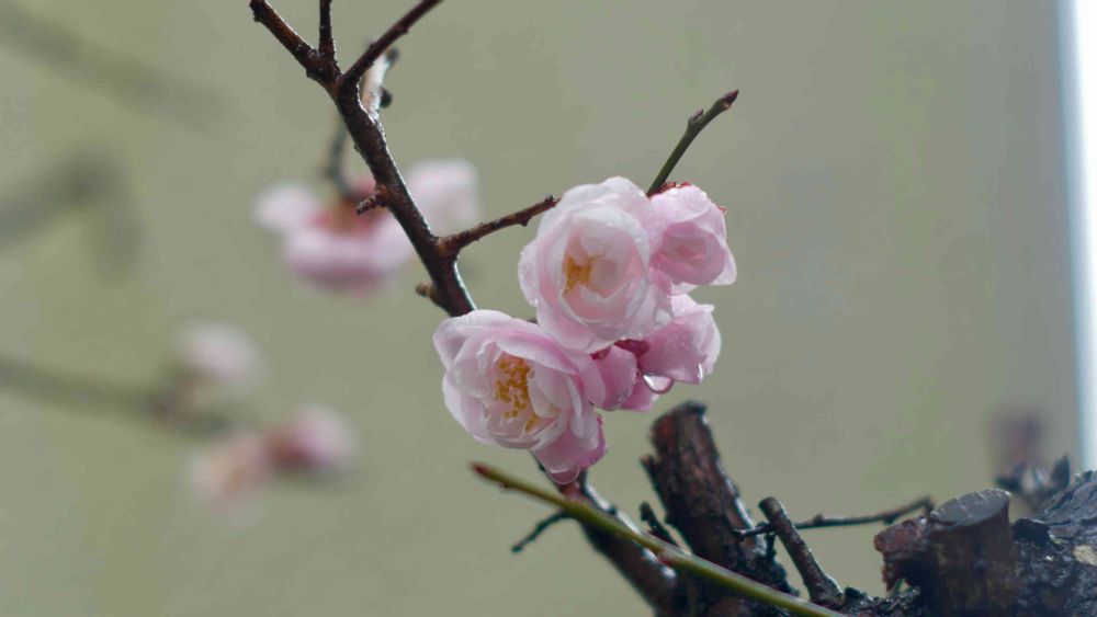 朝から冷たい雨が降る三連休初日、どこにも行けませんでしたが、庭の梅の花は咲き始めていました。