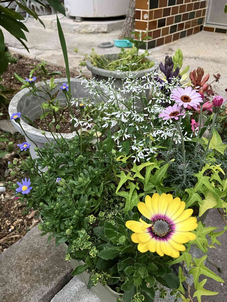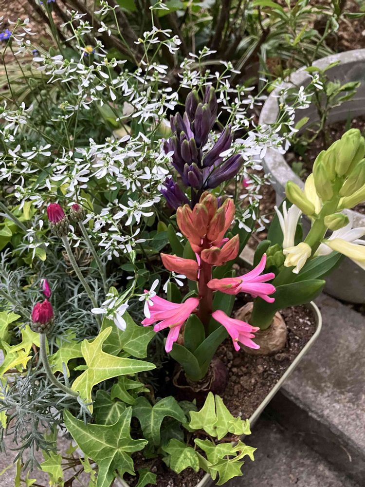 先週作った寄せ植えさん!ボロニアさん、ラベンダーさん、ヒヤシンスさん、オステオさんが咲いて来ました!嬉しい〜!育っていくのを見守る喜び!フラワンダフルラーイフ!