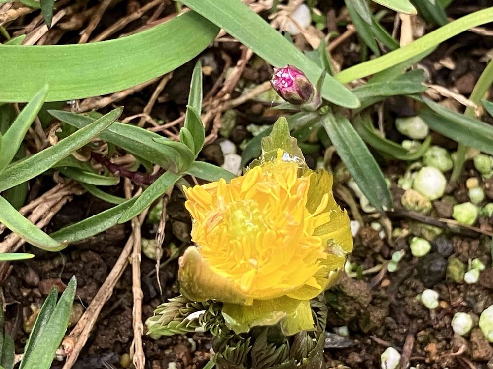 2枚目はフクジュソウですが、ナメクジにかじられて可哀想な感じに...😭