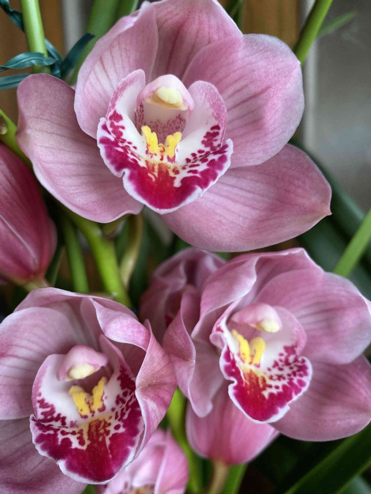 シンビジューム2種類 咲き始めました🌸 玄関が華やかになりますね♪(๑ᴖ◡ᴖ๑)♪💕🎶
