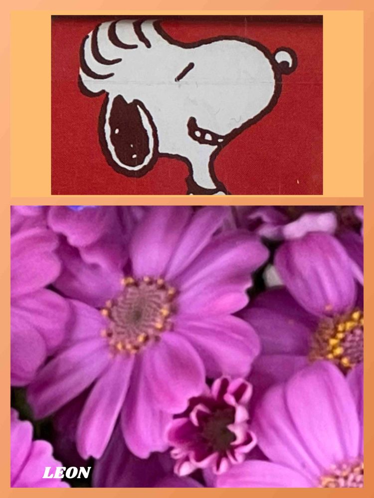 ウッドストックみたいなヘアスタイルのスヌーピーとサイネリアさん❣️